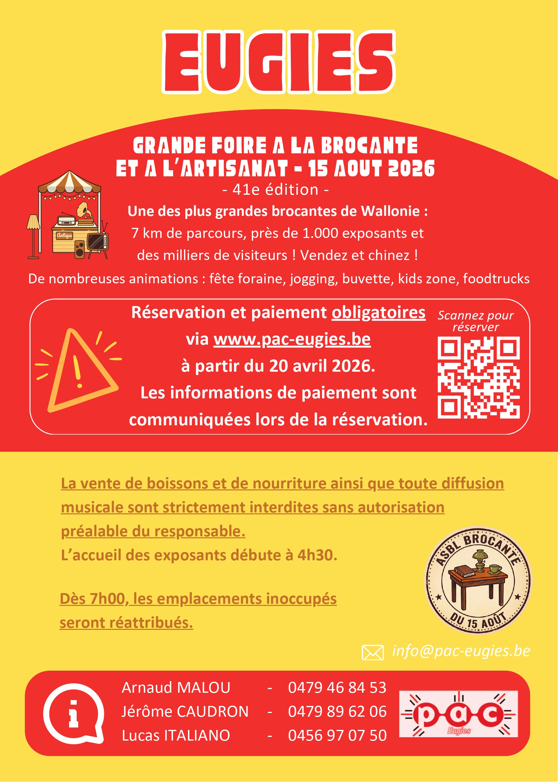 La brocante s’inscrit pleinement dans l’esprit du PAC d’Eugies : valoriser la rencontre, l’échange et la vie locale, tout en animant l’espace public de manière festive et inclusive.